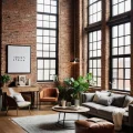 Для создания подобного эффекта используйте настоящую клинкерную плитку под кирпич или натуральный кирпич, если это возможно, и обязательно подчеркните конструктивные элементы черной матовой краской. Инвестируйте в качественную мебель из велюра или рогожки насыщенных теплых тонов, чтобы сбалансировать холод металла и камня. Бюджет будет выше среднего из-за необходимости работы с высокими потолками и большими окнами.